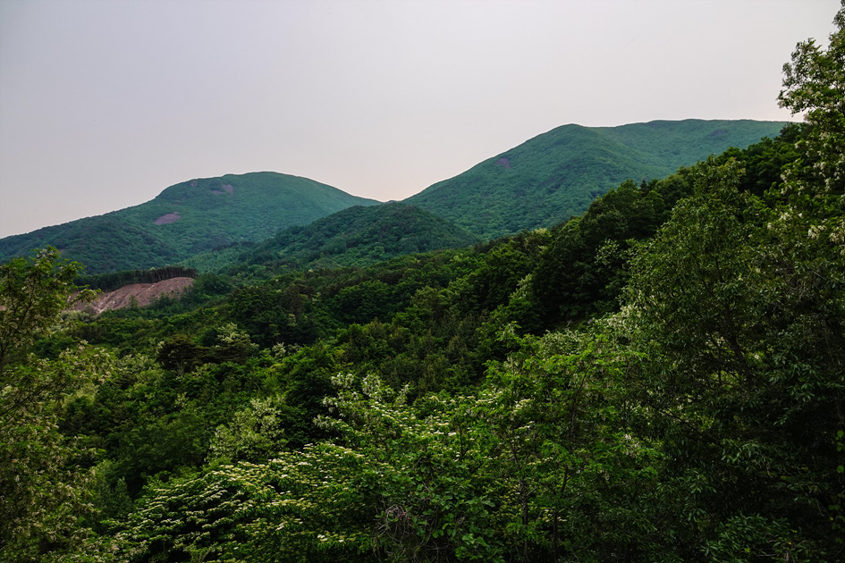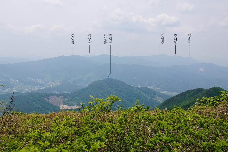 중간에 잠깐 공간이 나와 바라본 건너편 초점산과 오른쪽 대덕산