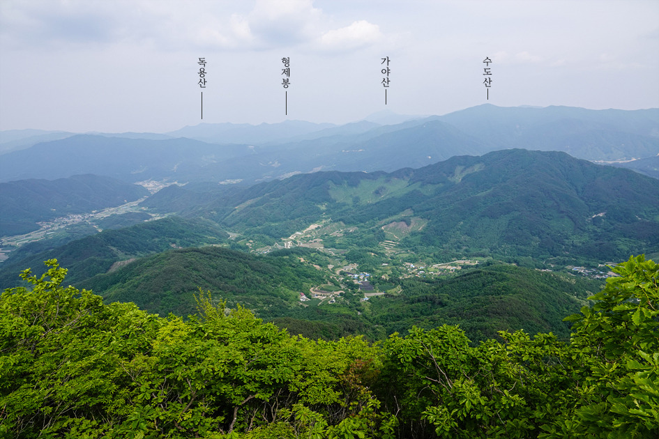 수리봉에서 바라본 가야산, 수도산, 독용산